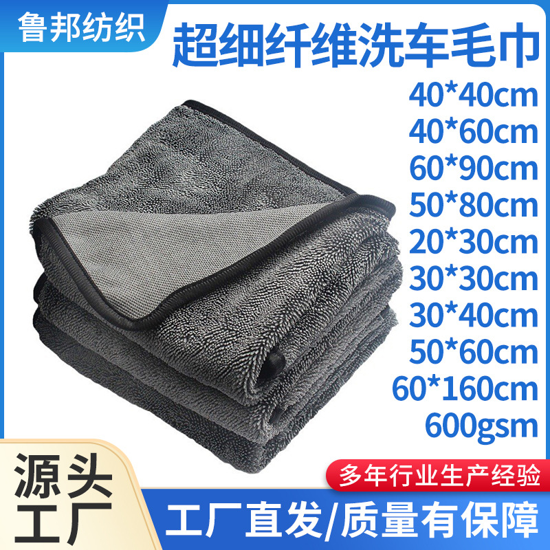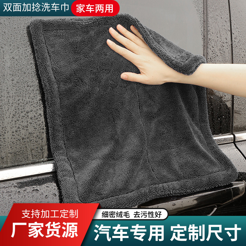 細繊維ポリエステルナイロン撚り糸編み込み吸水車拭きタオル 厚手両面二層吸水洗車タオル