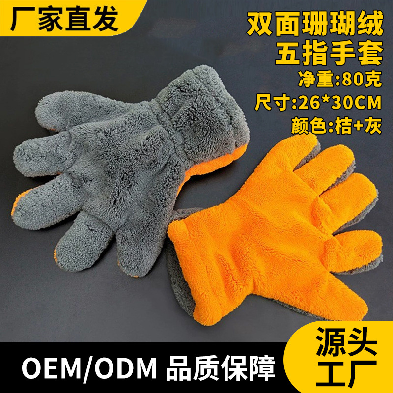 五指型コーラルベルベット洗車用手袋、厚手両面二色、車の清掃、家庭用、越境で人気商品