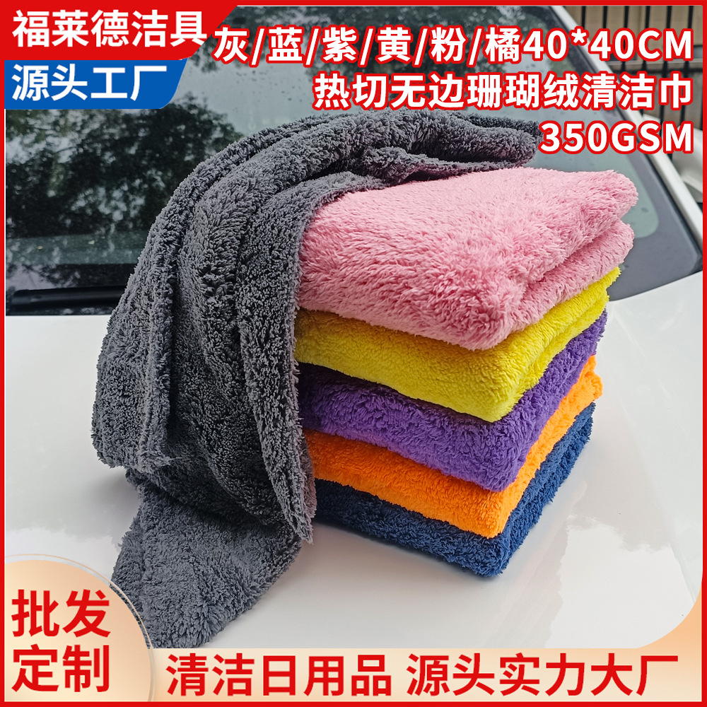 超音波ホットカット技術は吸水サンゴのベルベットを厚くして車のタオルを拭く車用の清潔な雑巾の自動車用品を厚くする