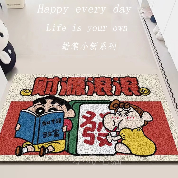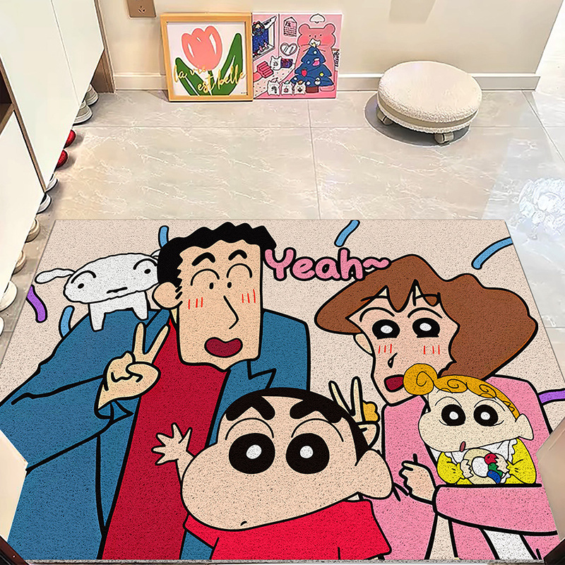 アニメ風クレヨン小新入戸ドアマット高級感玄関滑り止めマット汚れに強い裁断可能なシルクマット