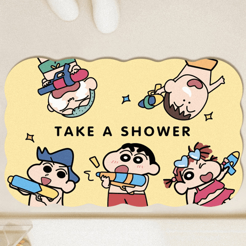 クレヨンしんちゃん珪藻泥マットシャワー室の入り口の吸水速乾滑り止めマットは汚れに耐えて浴室マットを管理しやすいです。