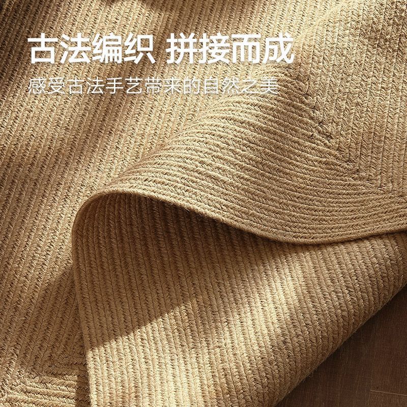 ジュートカーペット和風わびさびスタイルゼロ接着剤北欧汚れ防止滑り止めレトロリビングルームソファ寝室コーヒーテーブルマット