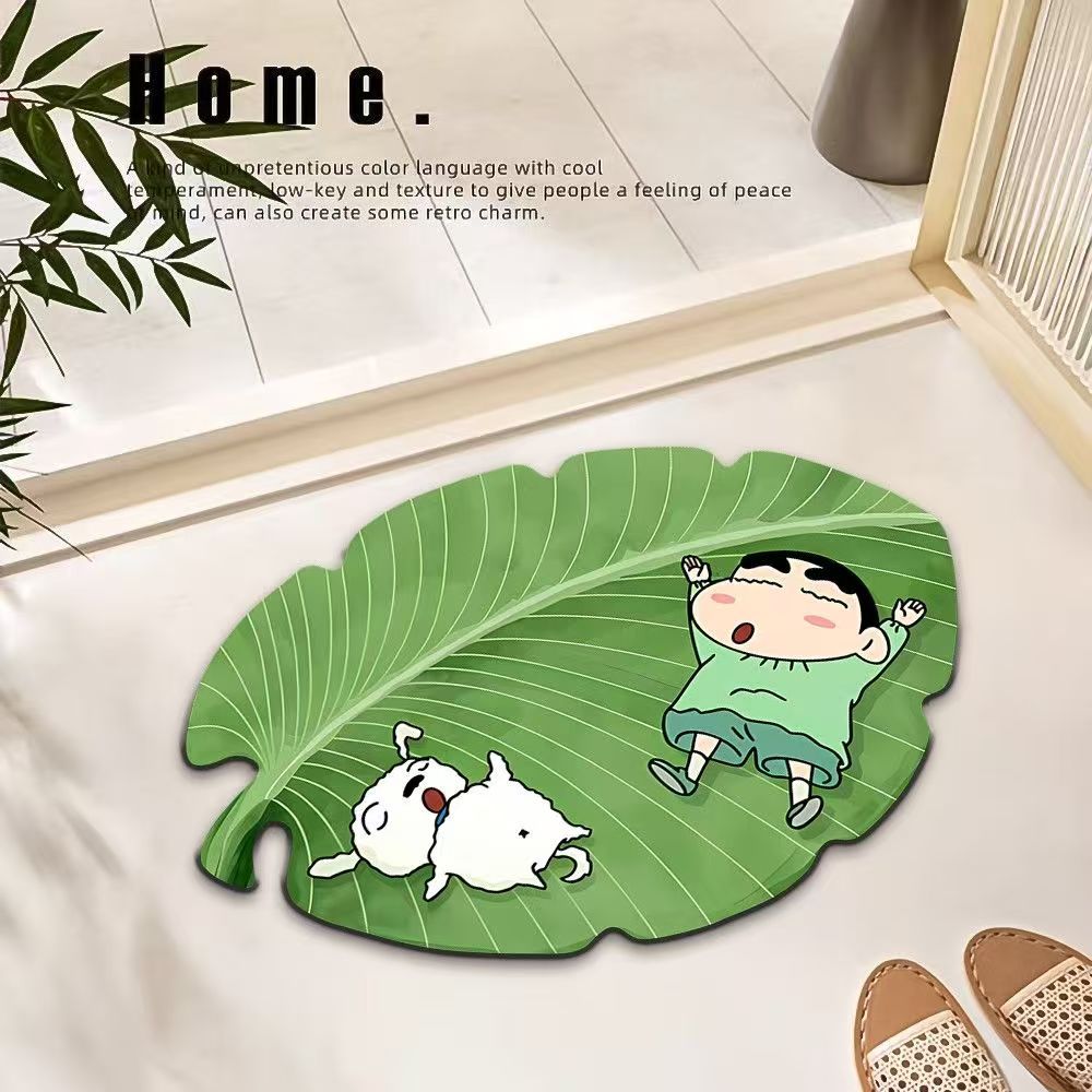 クレヨンしんちゃん 緑の葉 家庭用浴室珪藻土マット トイレ吸水速乾 浴室玄関滑り止めフットマット