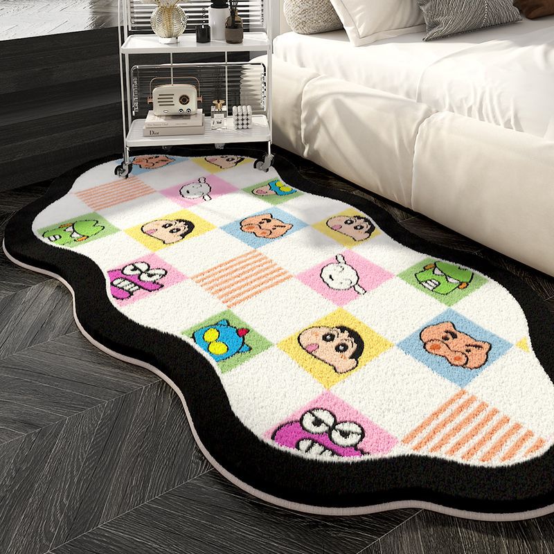 漫画クレヨンしんちゃん模造カシミヤカーペット寝室ベッドサイドブランケット少女部屋汚れに耐えるマットフードの間長いブランケット