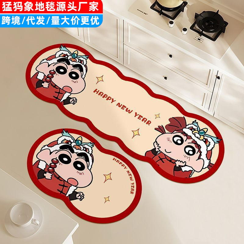 クレヨンしんちゃんキッチン珪藻泥マット家庭用長条吸水吸油カーペットは汚れに強く、滑り止めマットを整えています。