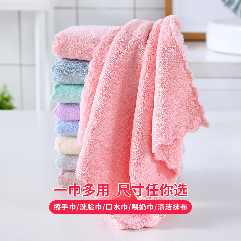 卸売り無地の四角いタオルの高いサンゴの子供の顔を洗うタオルの卸売りの福祉の小さいタオルの台所の清潔な雑巾