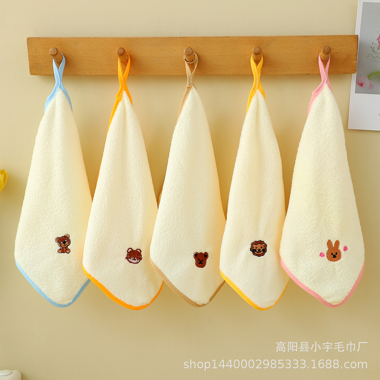 動物ハンドタオル スクエアタオル ラグ 吊り下げ可能 キッチン 子供用 コーラルベルベット ホワイト