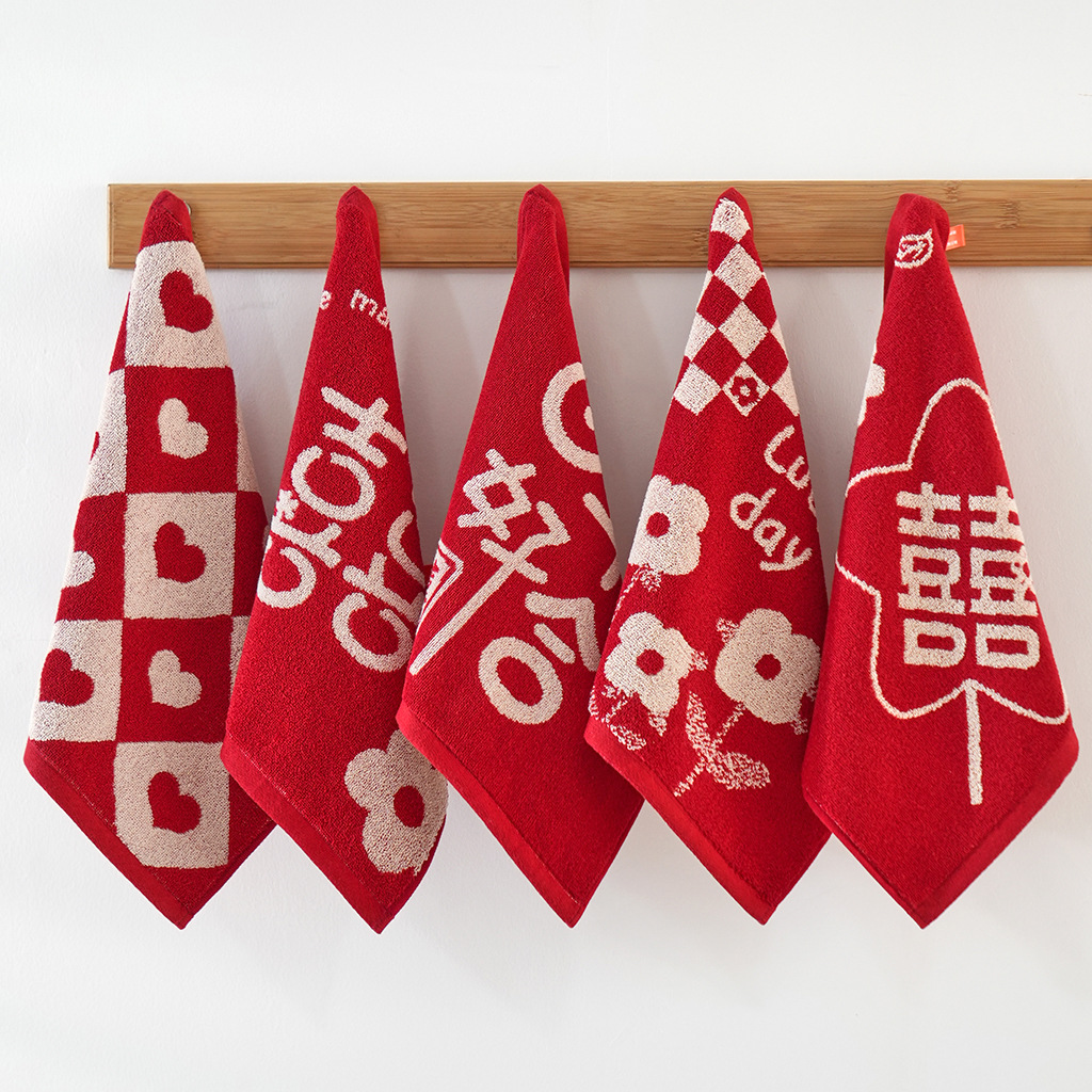純綿の結婚式の赤いペアの正方形のタオル、結婚式の特別な贈り物