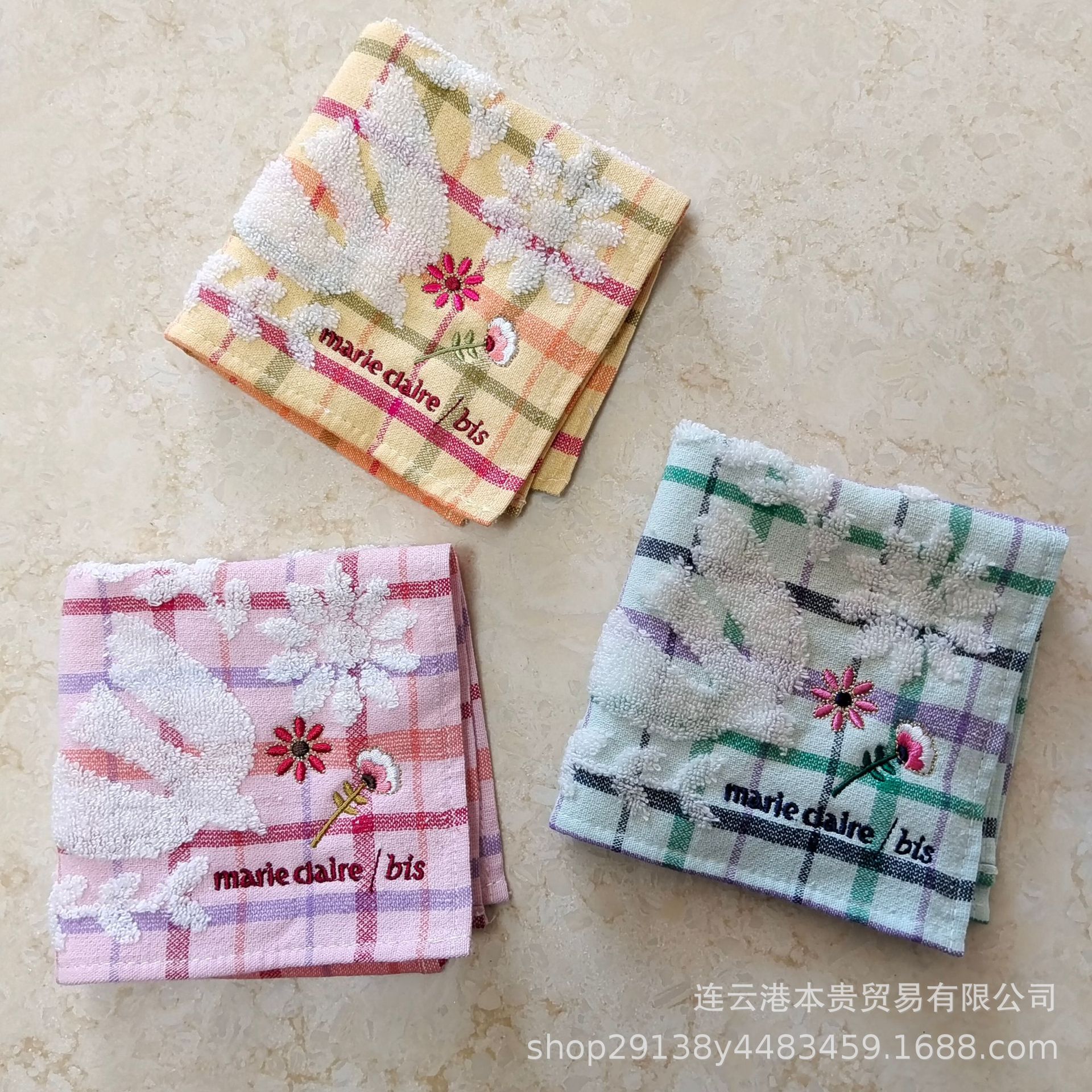 タオルメーカー卸売日本製シンプルチェック柄増粘純綿スクエアタオルギフトタオル