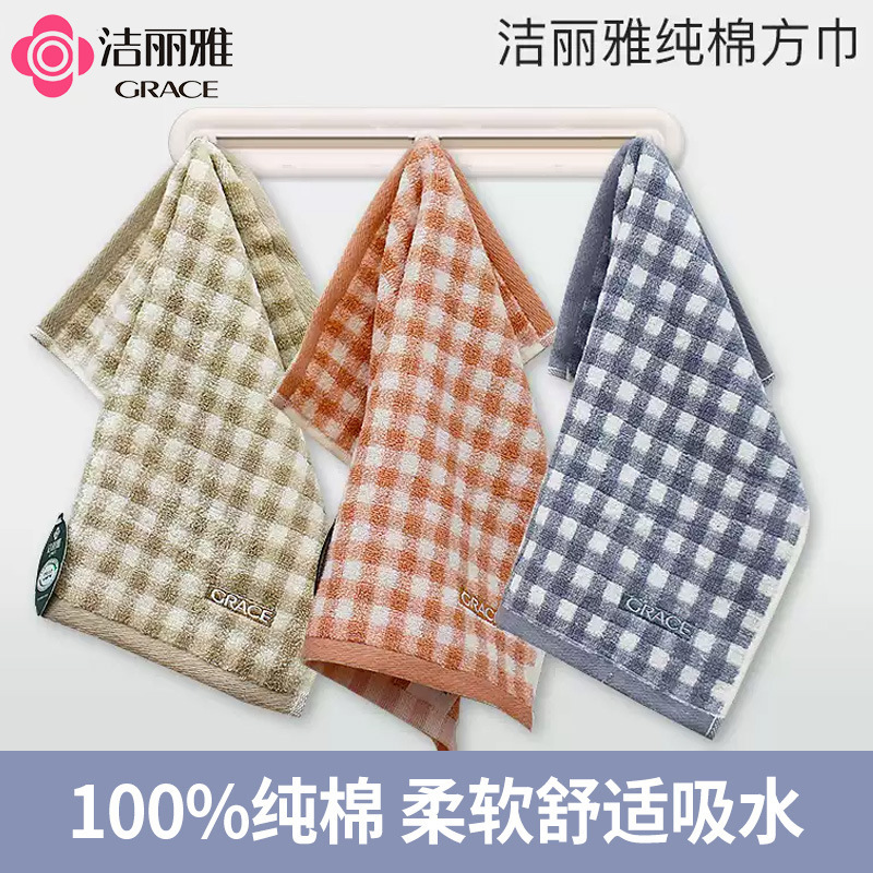 潔玉方巾棋盤格吸水小方巾竹繊維綿柔らかいA類洗顔タオルJQ3003W