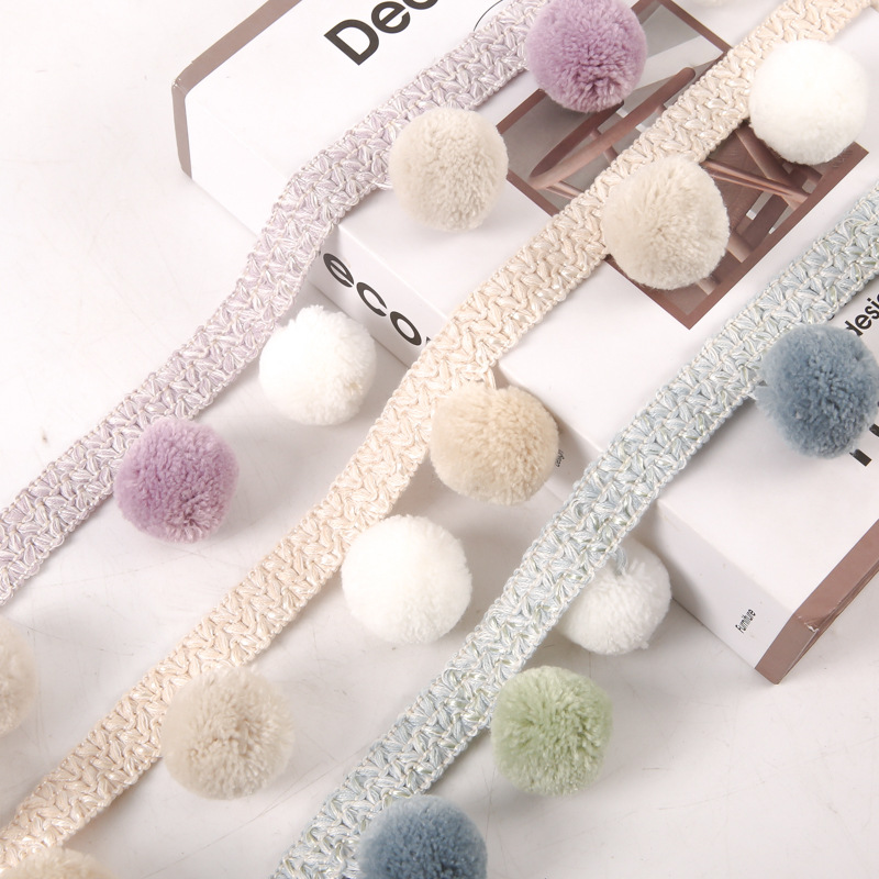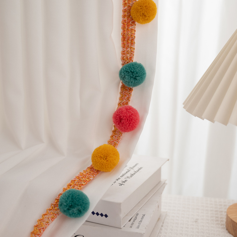 カーテンレースカラー三色パイルボール毛玉ビーズレース立縁飾り縁子供部屋飾り側縁