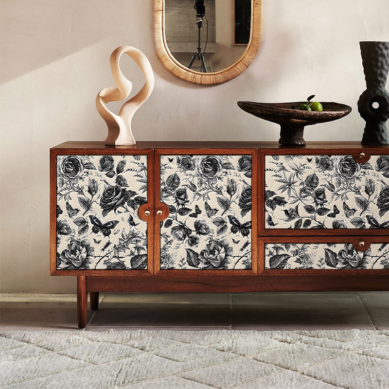 フランスの壁紙の赫本の復古の壁紙は自分で家具の箪笥を接着して古いタンスの扉を作り直して色を変えて装飾を貼ります。