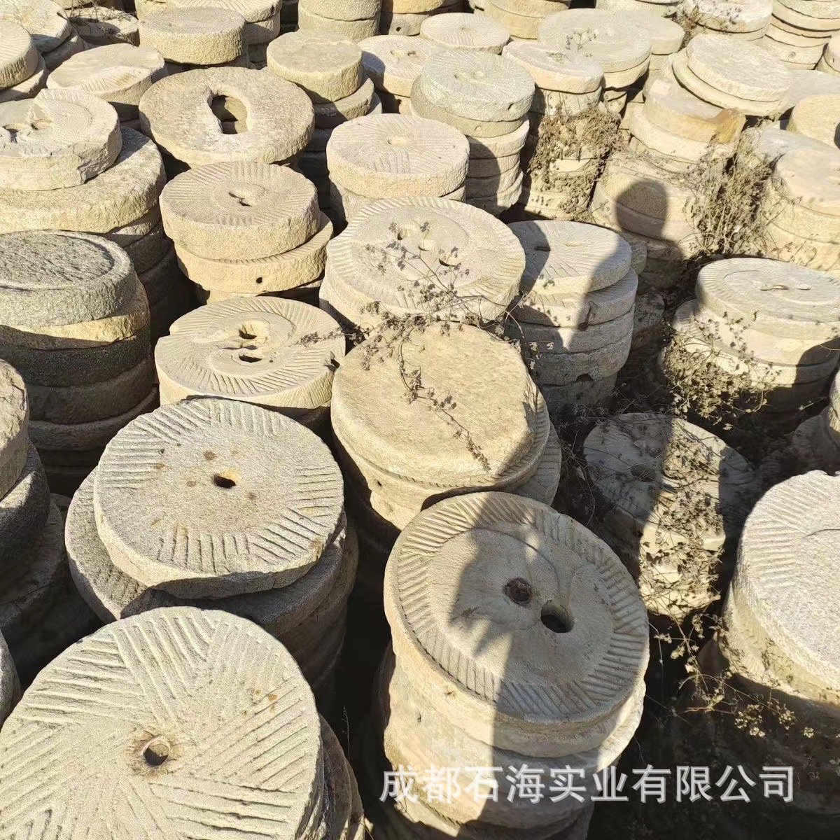 山東省の田舎の古い石臼、田舎の大きな石臼、大量の在庫卸売