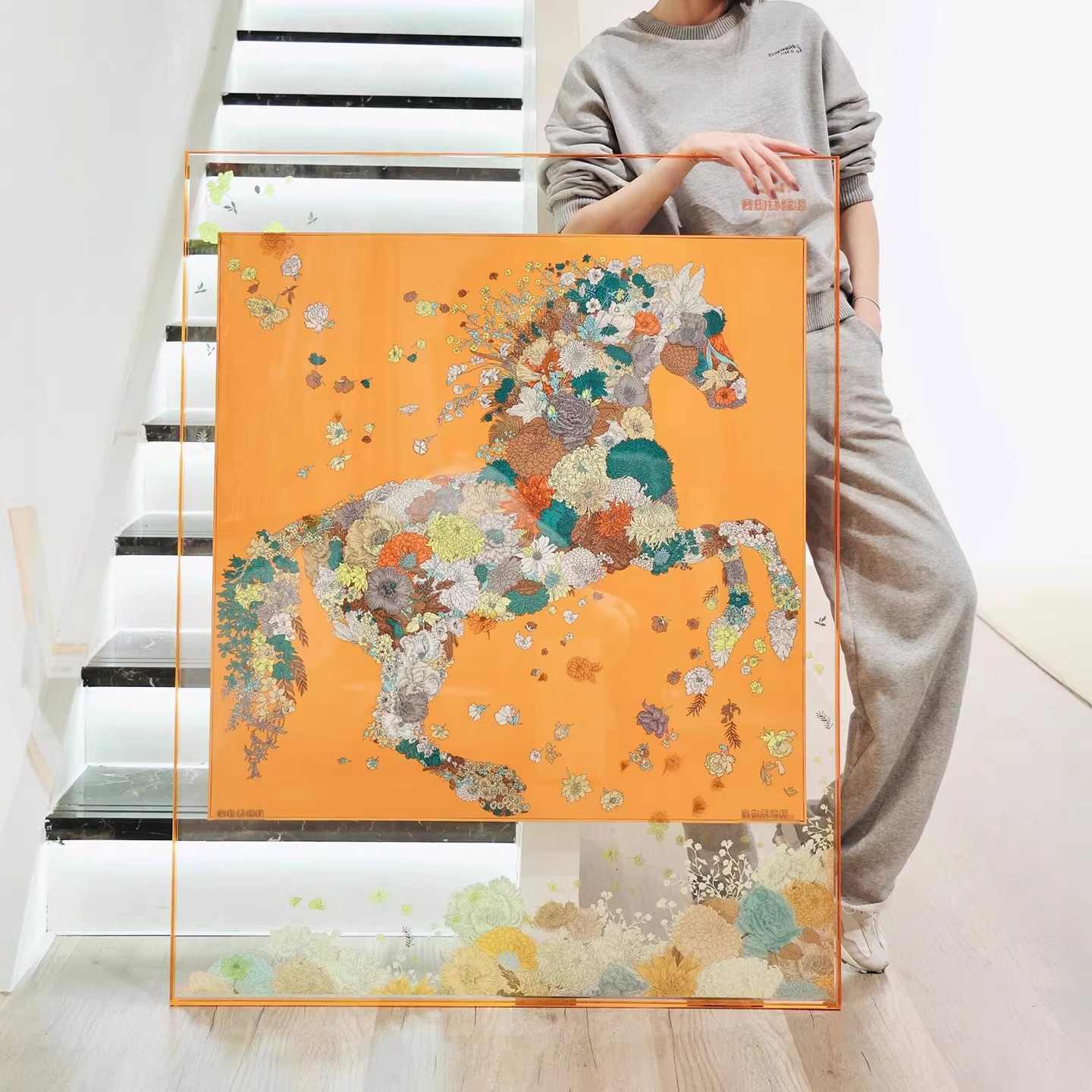 シルクスカーフ玄関吊り絵アクリルハイエンドフレーム高級壁画ライト高級リビングルームソファ背景壁装飾絵画