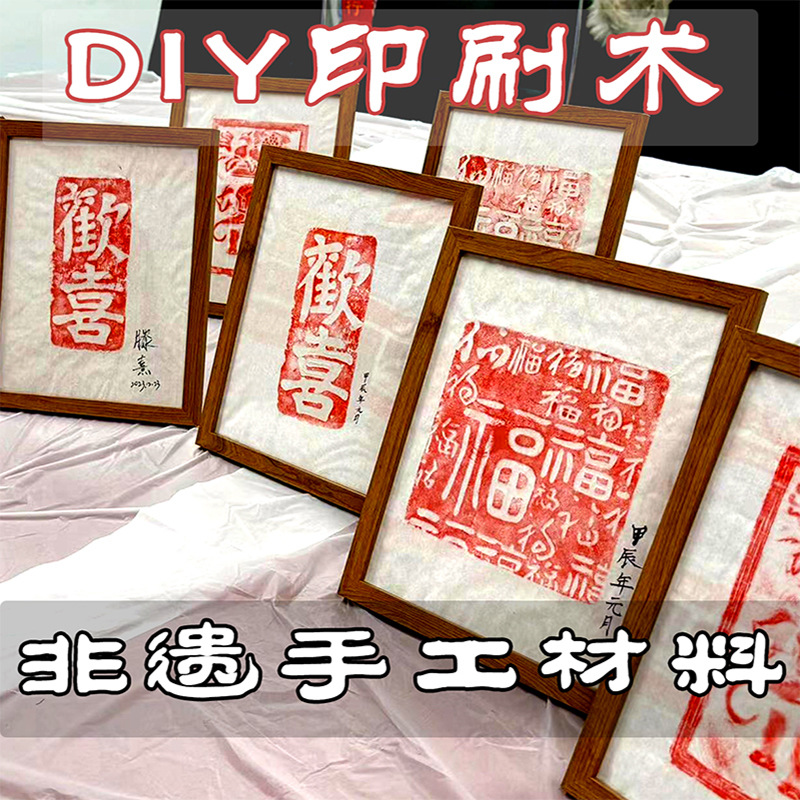 非遺品手作り拓印画diy材料包セット団建活動暖場ツールテンプレート彫刻版装飾画