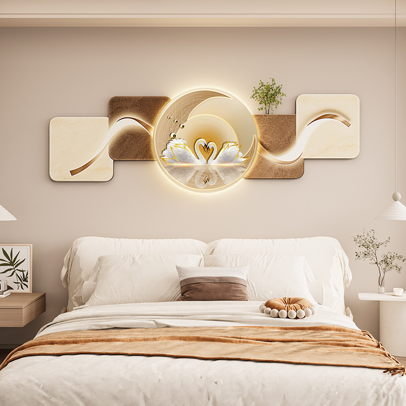 モダンなシンプルな寝室の装飾画ledライトの横断幕