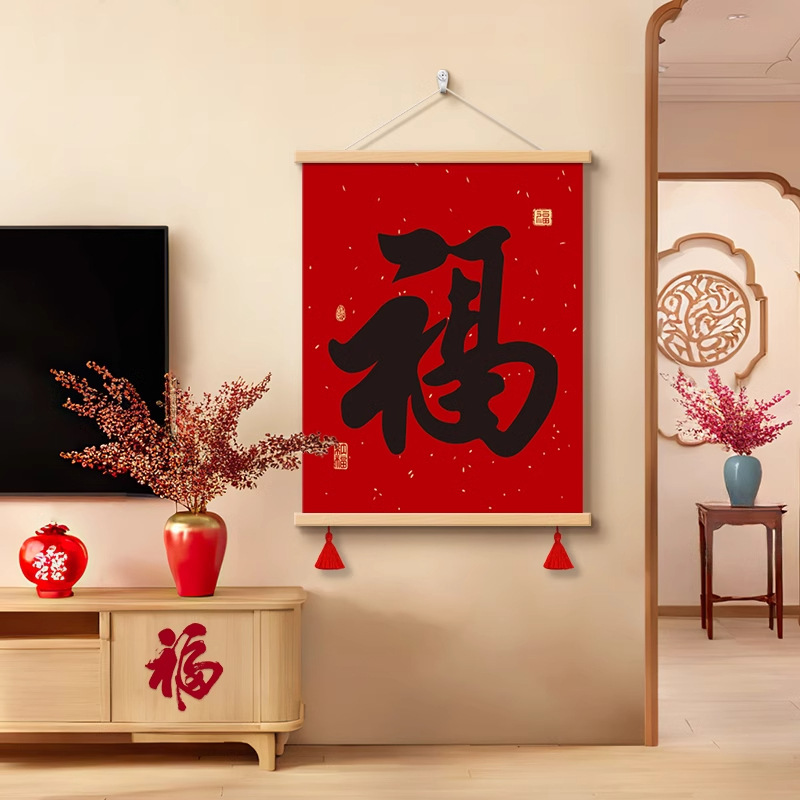 新しい中国風の祝福の言葉の吊り絵、リビングルームの装飾絵画、レストランの入り口、新しい家の寝室の吊り絵、祝福の言葉と富のひょうたんの絵