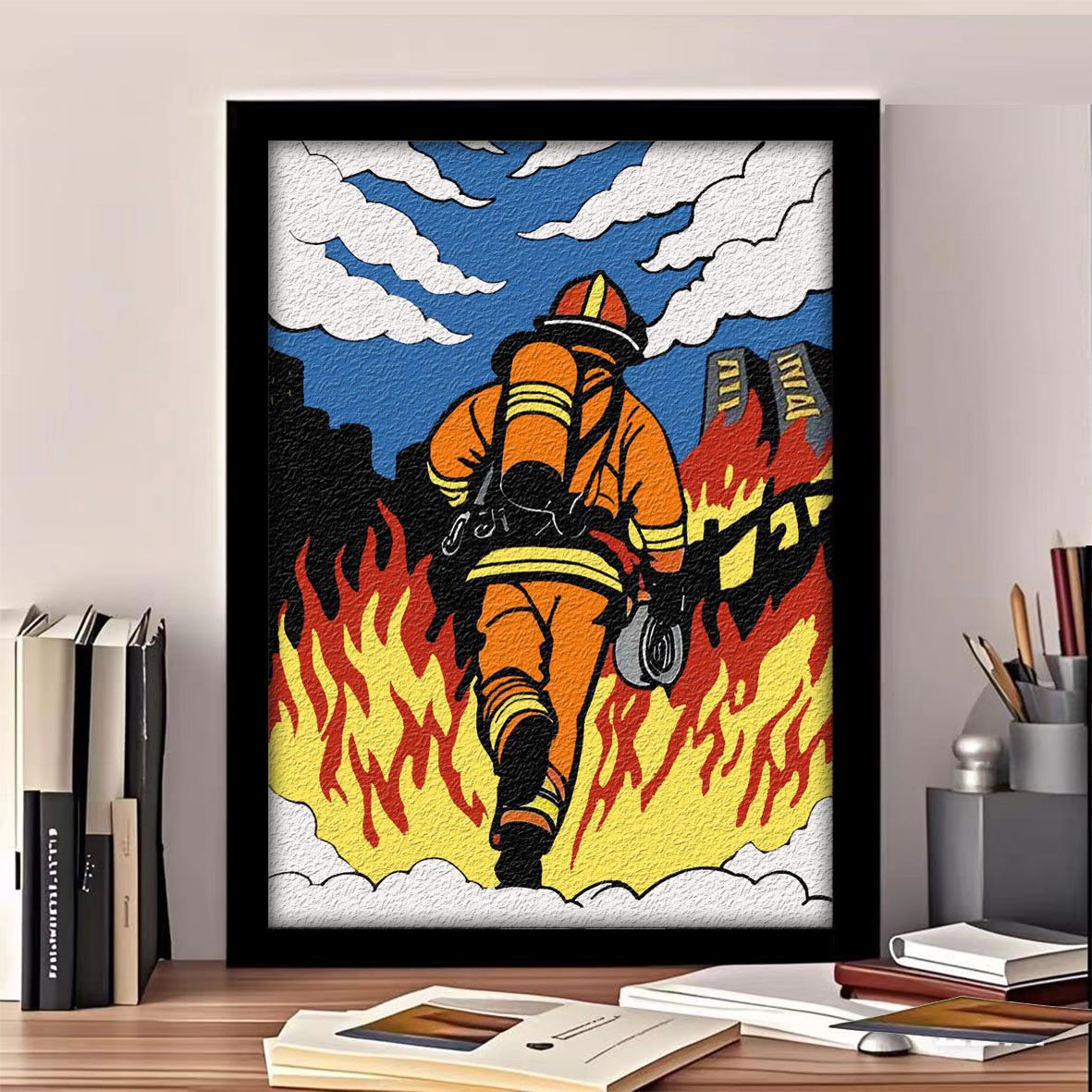 無形文化遺産の紙パルプ絵画、手作りのDIY、逆流者への敬意を表する消防士の創造的な紙パルプ絵画