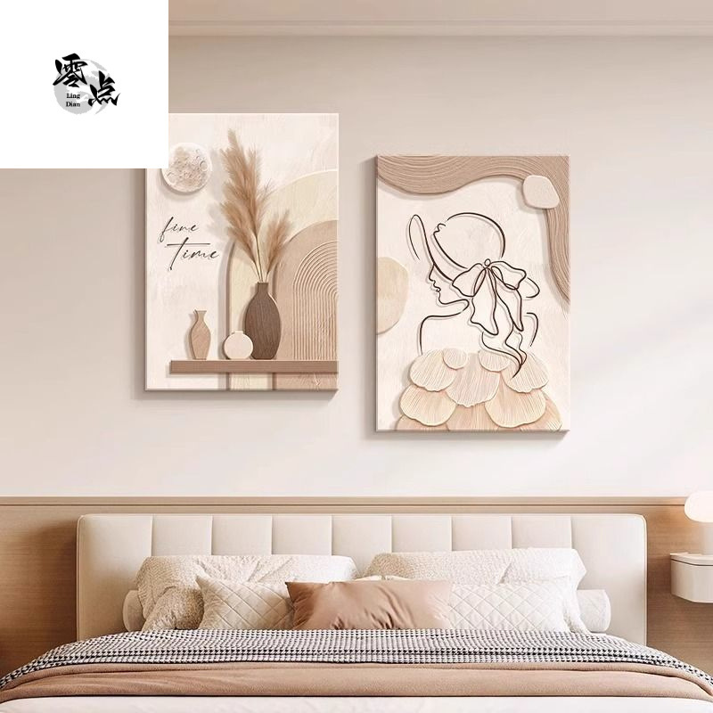 寝室装飾画クリーム風ベッド掛け画抽象線人物シンプル感組み合わせ画レストラン壁画