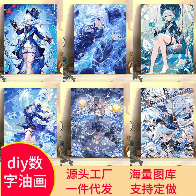 デジタル油絵DIY原神水神フニンナ二次元アニメ周辺グッズ漫画手描き装飾画カラー塗装