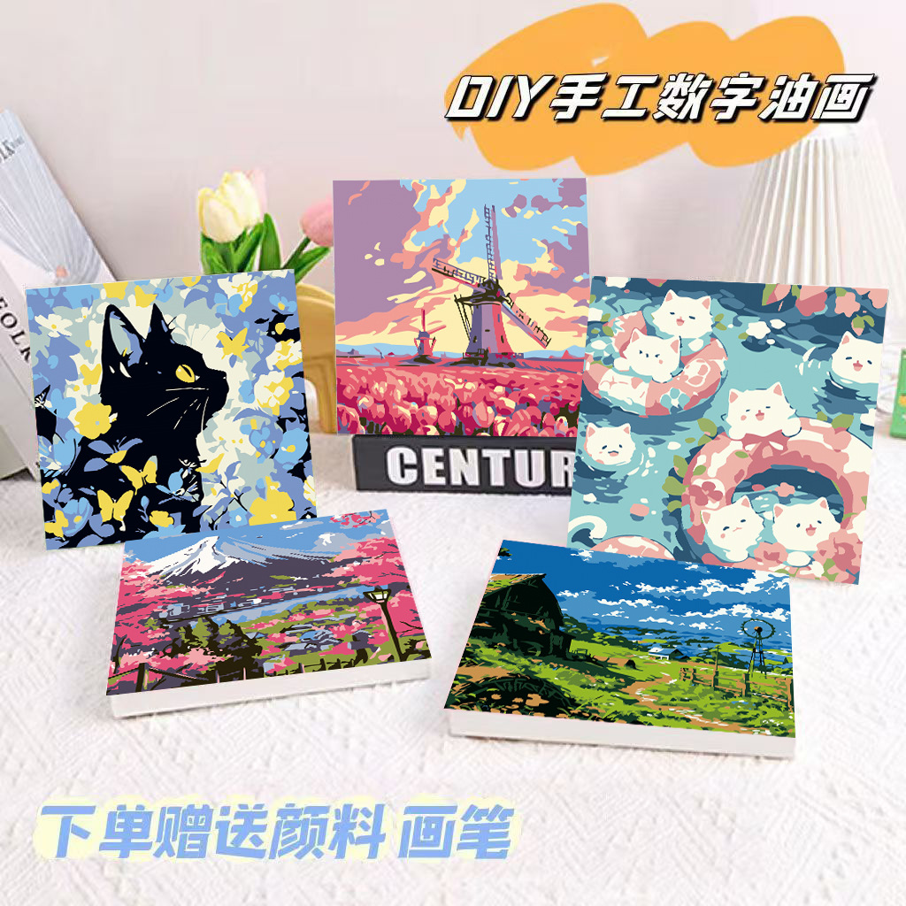 新しい20*20デジタル油絵子供の手作り塗装装飾画diy塗り風景油絵卸売り癒し系