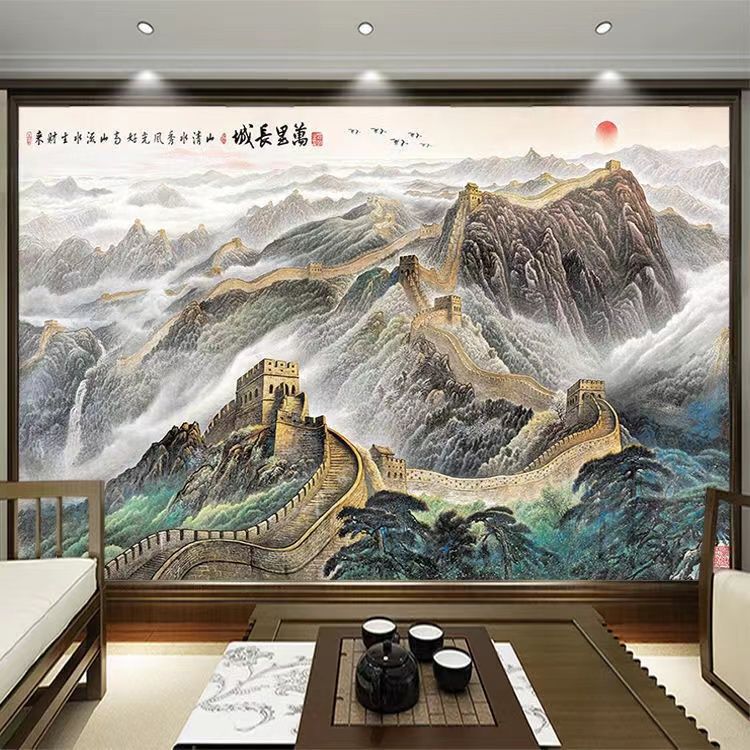 客間ソファー背景壁装飾画自己粘着壁シール山水画3立体家と万事興壁紙壁画