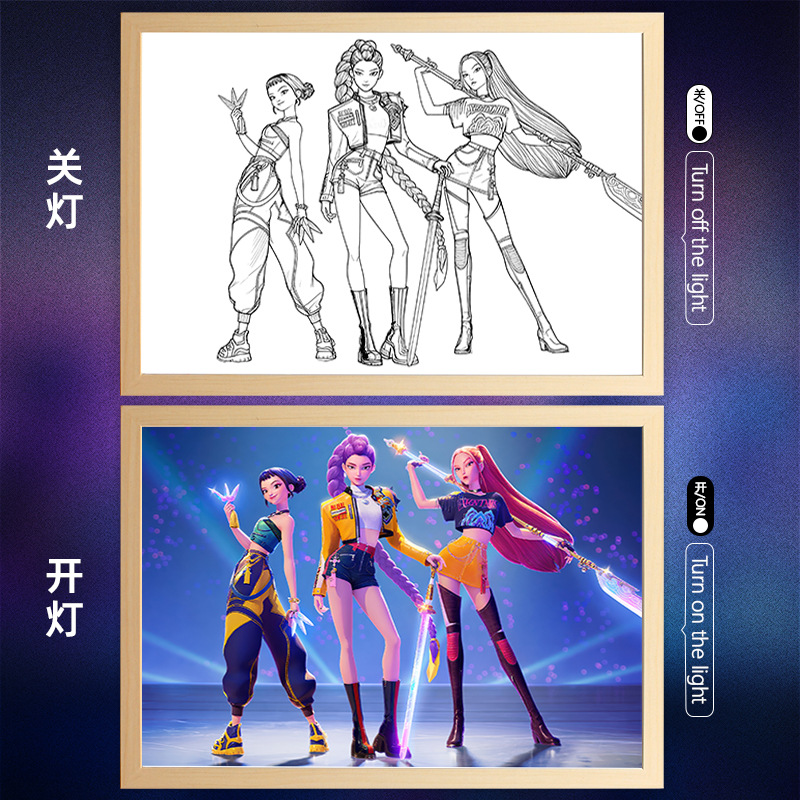ライトペインティング額縁 家庭用木製装飾画 クリエイティブ漫画ナイトライト ドラゴンボール ナルト ワンピース クロスボーダー