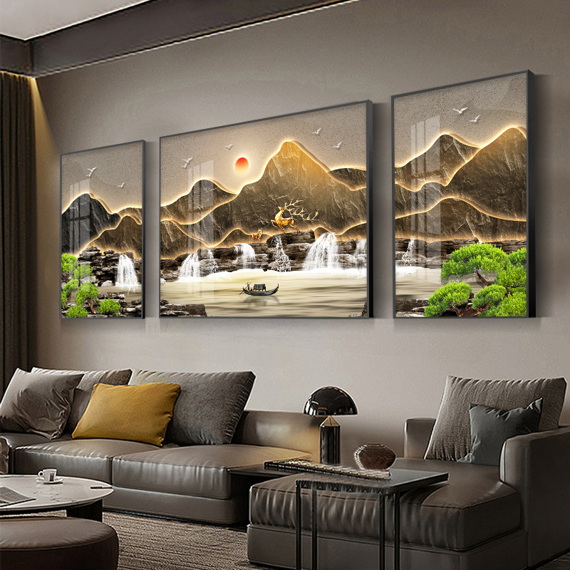 柿柿如意玄関装飾絵画クリームスタイル日照黄金山水画ログスタイル玄関ドア廊下通路吊り絵画
