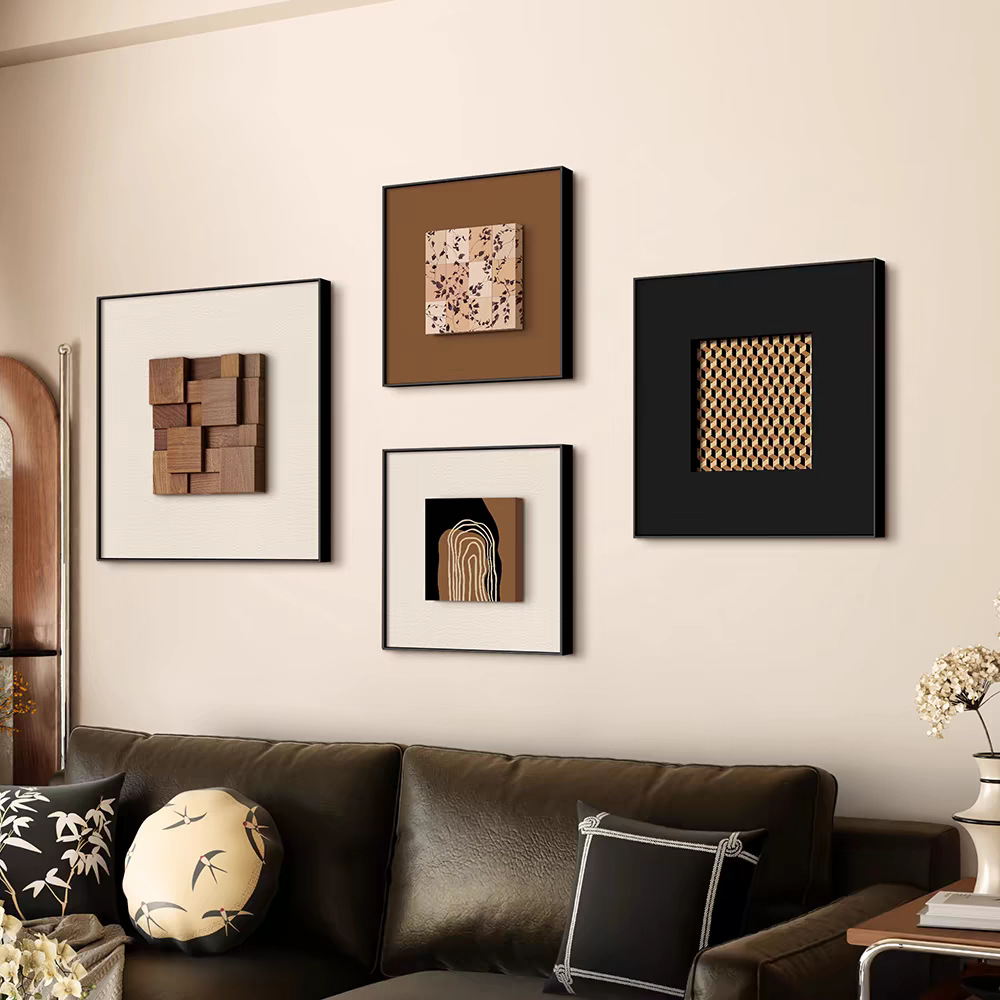 立体ウォールナットレトロスタイルリビングルーム装飾絵画レストランハイエンド吊り絵画ダイニングルーム寝室壁画ベッドサイドマスターベッドルーム