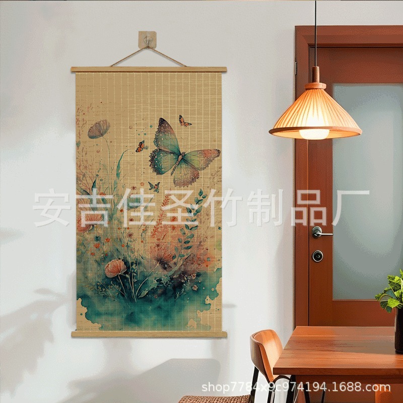 竹カーテン吊り絵画竹ローラーブラインド絵画モダンな装飾動物カラー絵画パターン吊り絵画竹吊り絵画