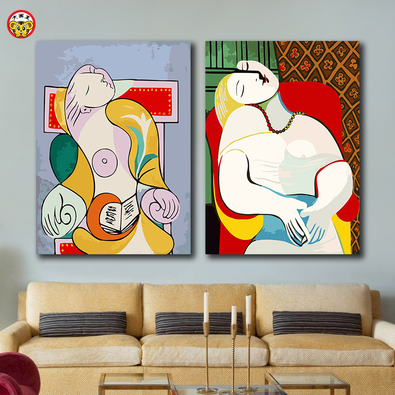 クロスボーダーアマゾン抽象名画ピカソdiyデジタル油絵成人減圧油彩画客間人物