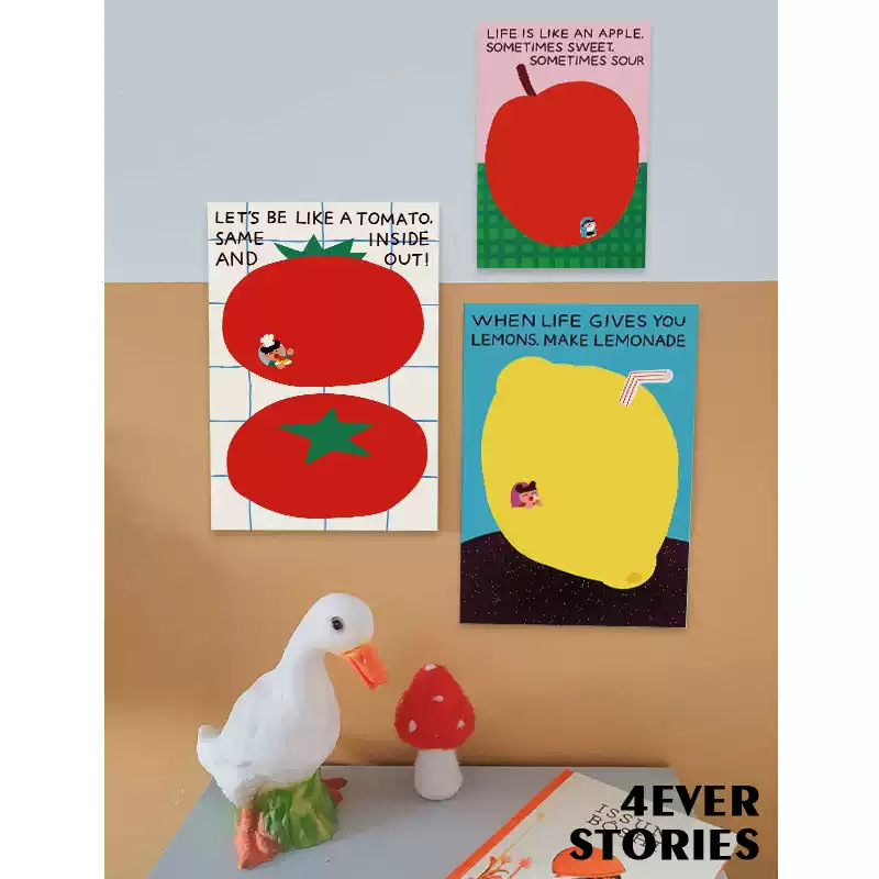4ES フルーツアート手描き漫画装飾ポスターリビングルーム子供部屋寝室の壁のステッカーポスター