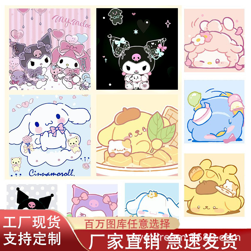 DIYデジタル油絵卸売 サンリオ子供向け漫画塗り絵 手描き落書きアクリル絵画 クリエイティブ手描き