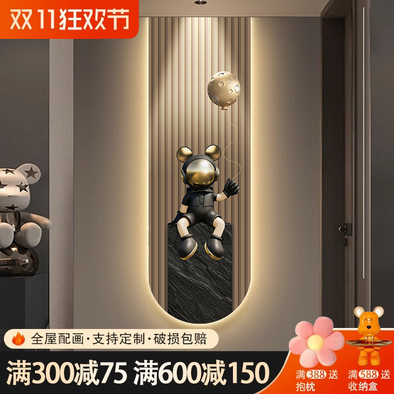 軽豪華入戸玄関装飾画宇宙飛行士led壁灯画KAWS暴力熊高級廊下端掛画