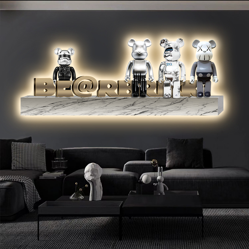 Kaws暴力熊客間装飾画ledランプ画ソファー背景壁掛け画高級感寝室発光壁画