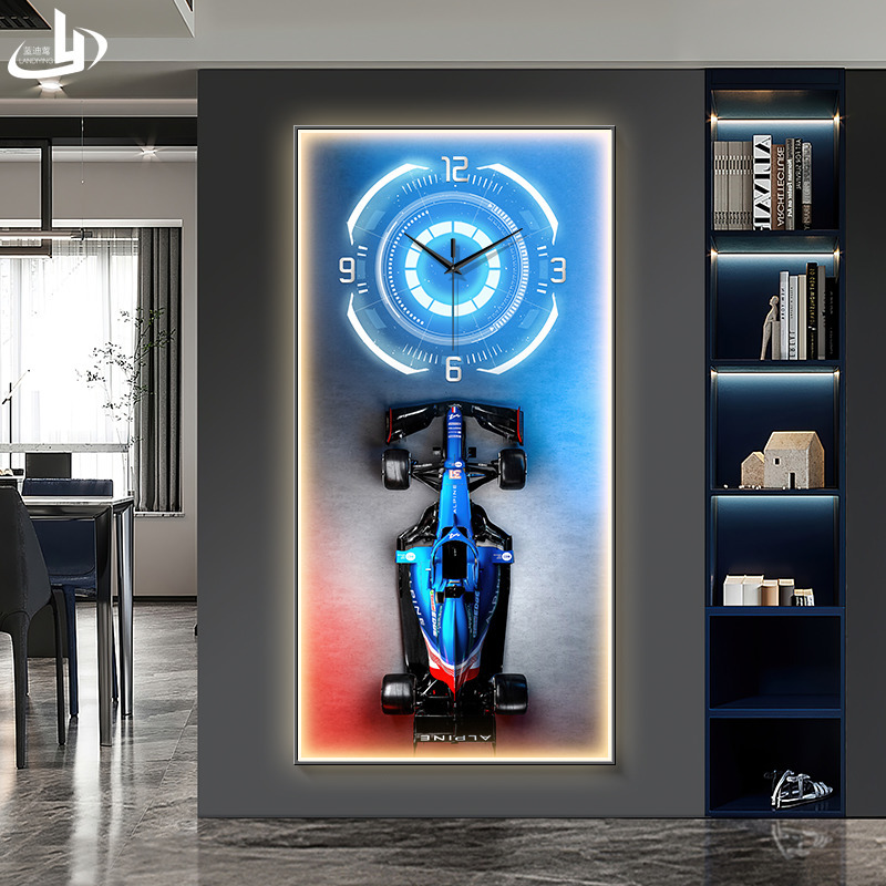 F1レース玄関装飾画時計リビング通路廊下掛け絵クリエイティブ高級感自動車時計ウォールライト絵