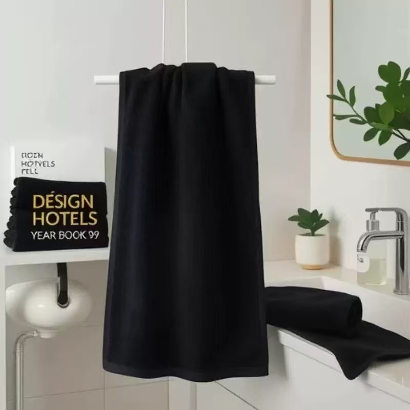 国境を越えた黒いタオル、バスタオル、正方形のタオル、厚くて吸収性のあるホテルの美容室、フットマッサージ、理学療法、理髪店専用 400G
