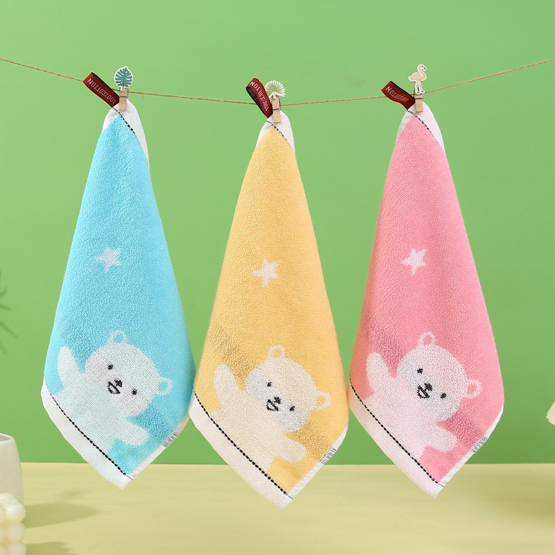 子供用小さなタオル漫画刺繍正方形タオルは掛けることができ、柔らかく吸収性のある家庭用フェイスタオル幼稚園の手と顔のタオル