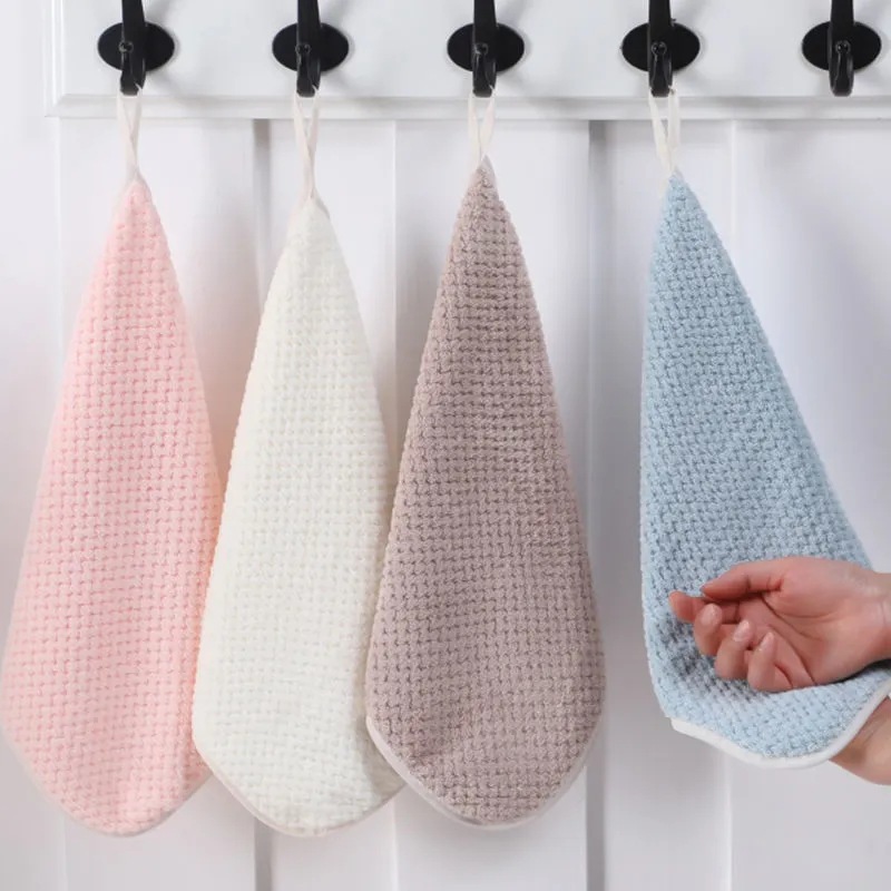 パイナップルのサンゴのベルベットの小さなスカーフを厚くして手を拭いて顔を洗うタオルキッチン吊り式吸水布