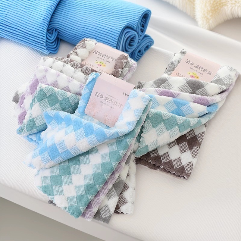 30×30cmコーラルベルベット三色格子柄タオル、柔らかく吸水性に優れたA級小型タオル、抗菌性と肌に優しいキッチンクロス、卸売