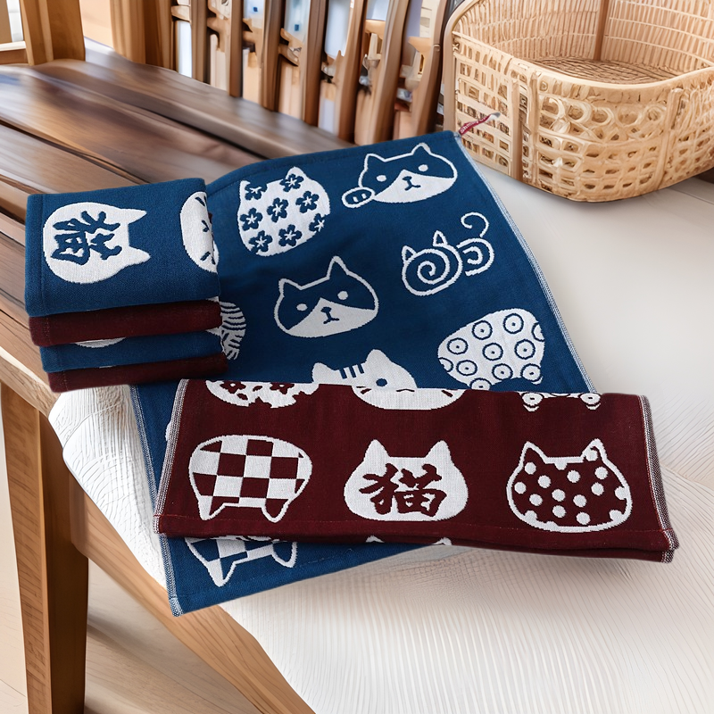 智翔タイプのタオル三層綿ガーゼジャカードのタオル掛けタオルと和風猫キッチンタオル拭きタオル卸売り