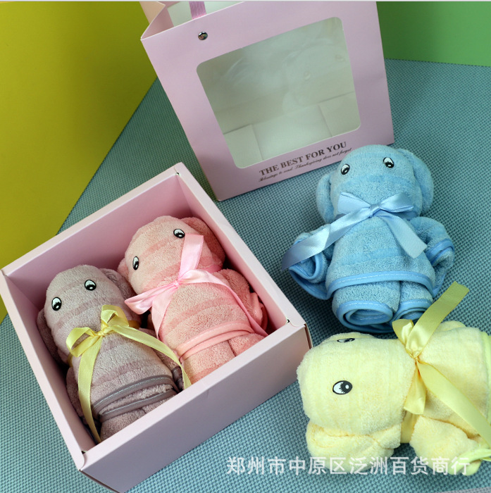 福甜32株ジャカード綿子供タオルかわいい子供趣味熊兎綿洗顔タオル幼稚園タオルギフトボックス