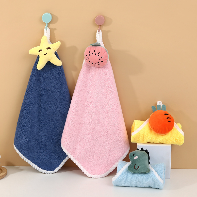 珊瑚绒擦手巾可挂毛巾玩偶可爱挂巾厨房卫生间速干吸水批发