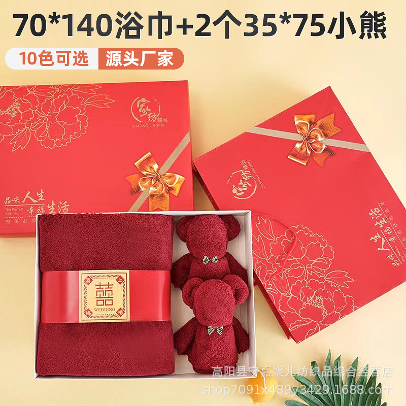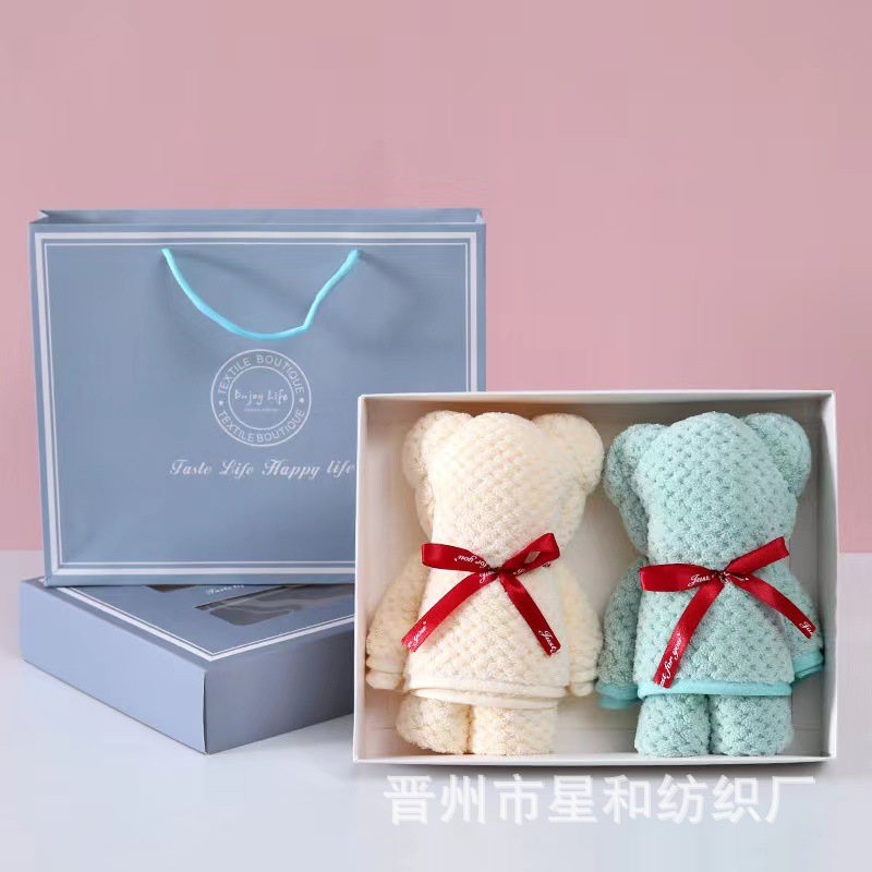 タオルバスタオルコーラルベルベット3点セットベアー礼箱セット結婚祝いのお土産結婚満月お返し礼箱セット