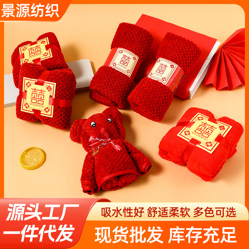 熊のタオルの結婚の贈り物の箱は嫁ぎますお祝いの喜パのサンゴの絨毯の結婚式のお土産の贈り物のタオルのセットの卸売りを付き添います。
