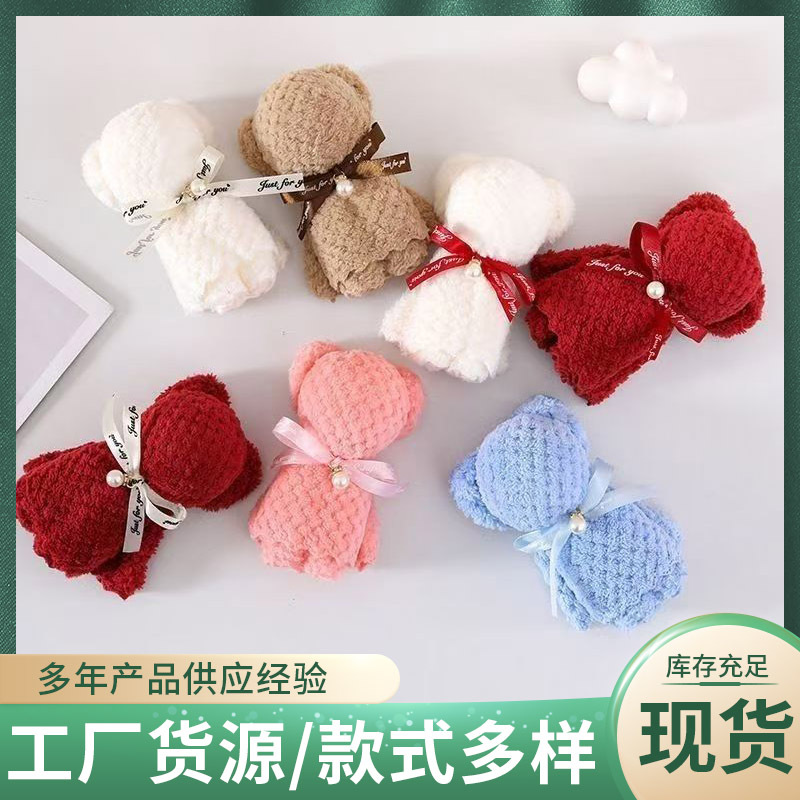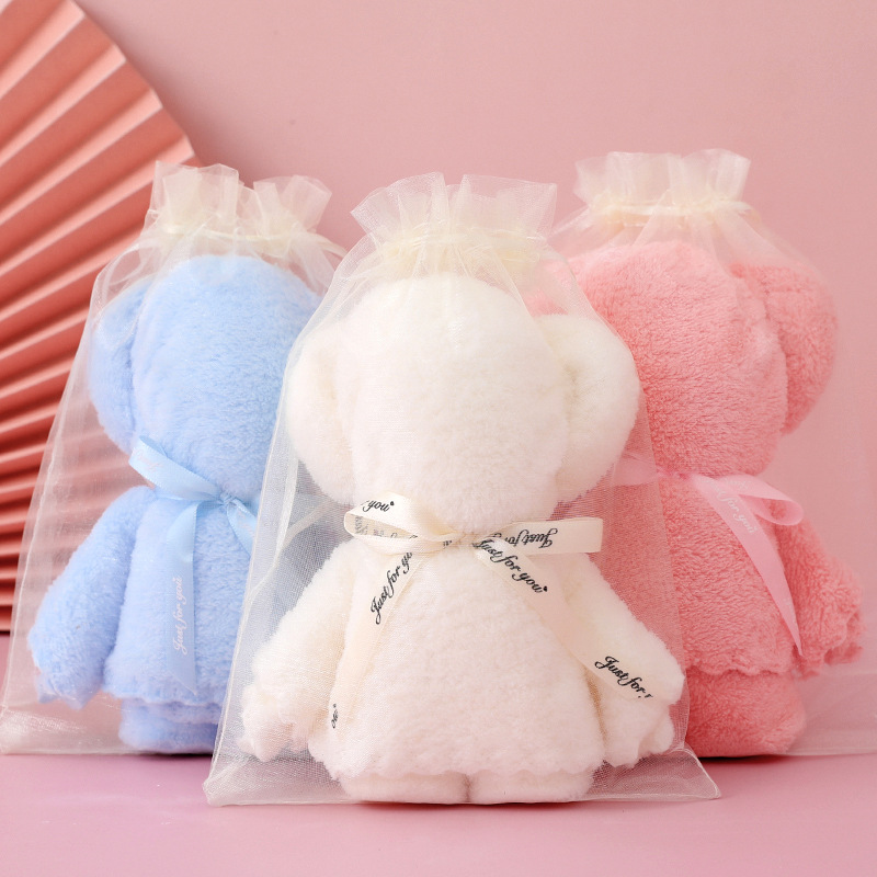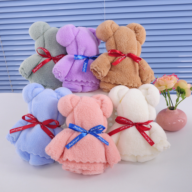 サンゴの毛の熊のタオルのお土産はロゴのアイデアのビジネスの贈り物の結婚の誕生日の活動の小さい贈り物を決めることができます。