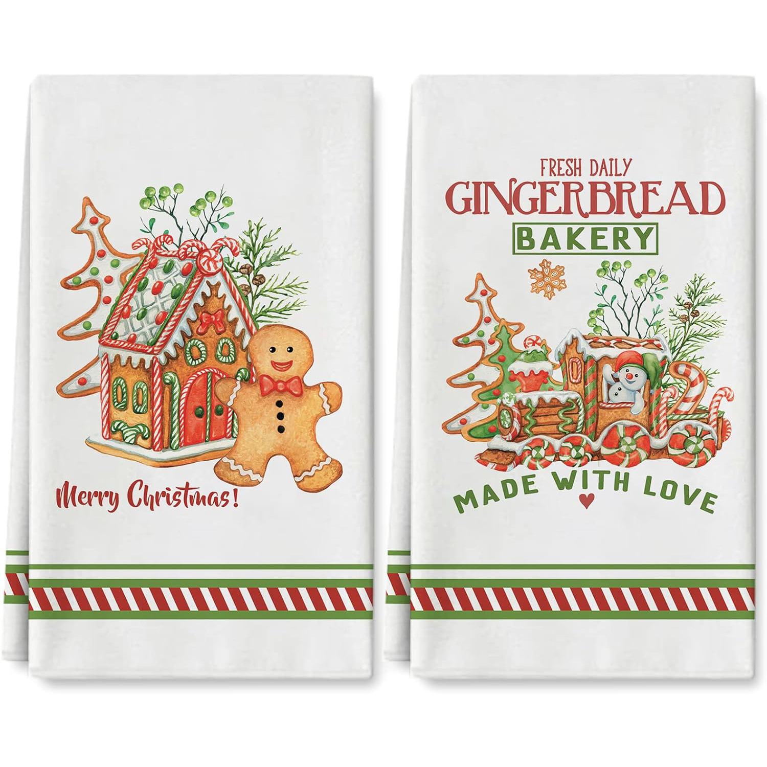 クリスマスジンジャーブレッドキッチンの皿洗いタオルジンジャーブレッドマン列車の皿洗いタオル超吸水乾いた手タオルタオル
