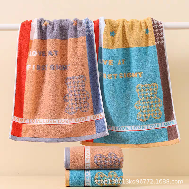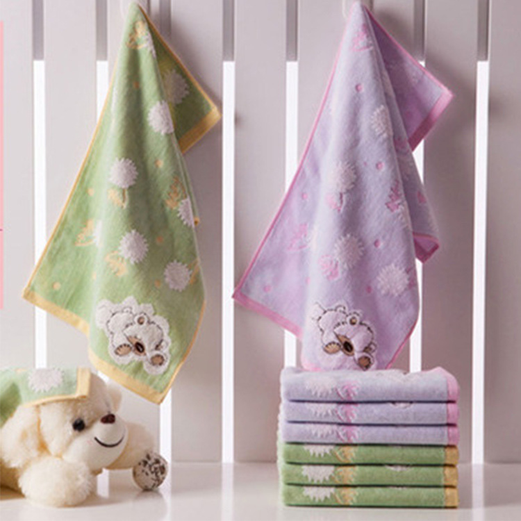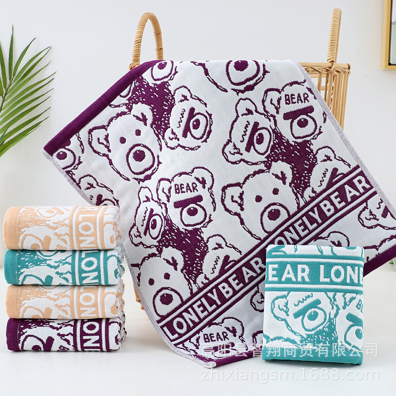 子供用タオルカラーガーゼジャカード純綿かわいい漫画千鳥クマ子供用タオルベビーソフト吸収性学生小さなタオル