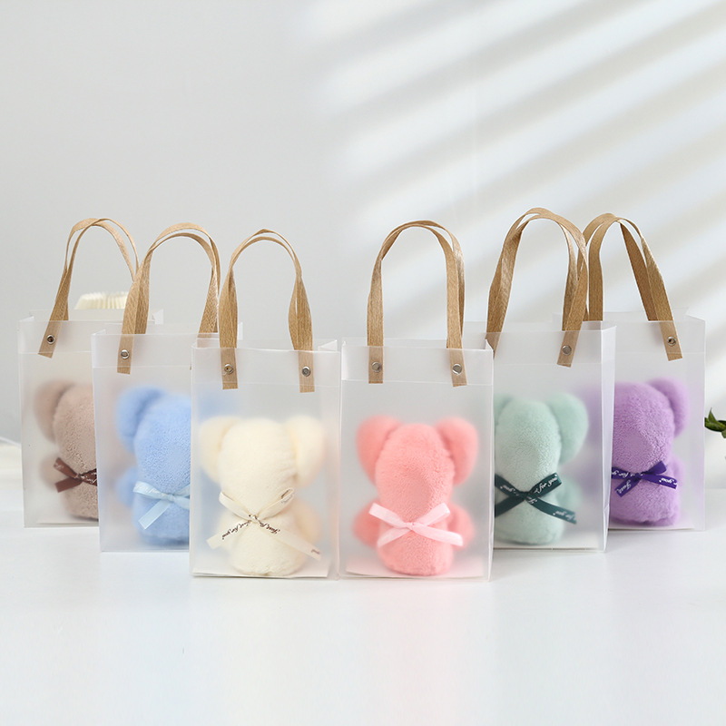 手提げ袋の中のサンゴの毛の熊のタオルのお土産のプレゼントの箱の結婚祝いの店の開業する贈り物の卸売りの広告の贈り物