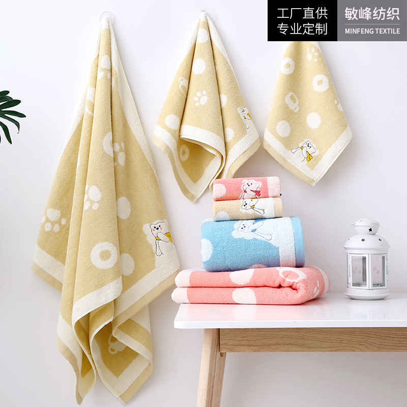 メーカー卸売り児童純綿童巾アニメ色糸ジャカード吸水かわいいベアー長耳兎ミッキー幼稚園